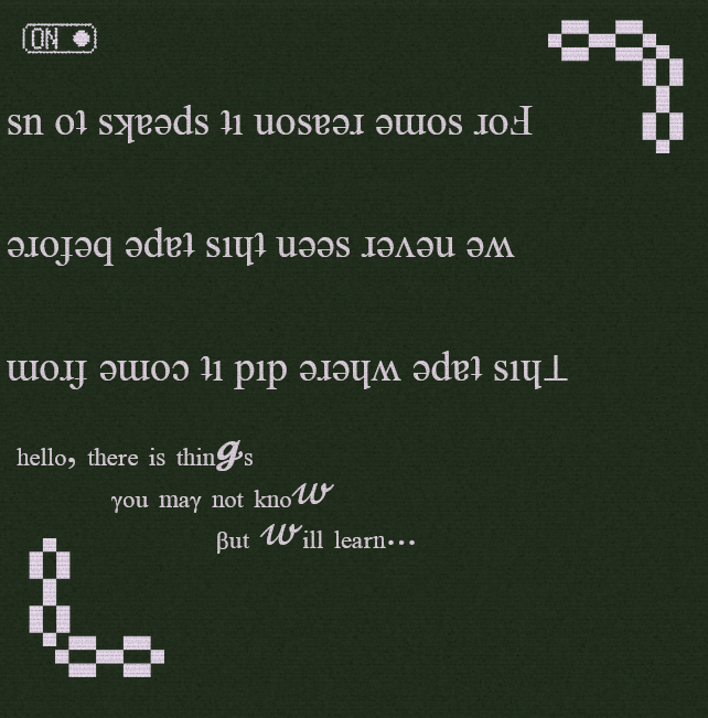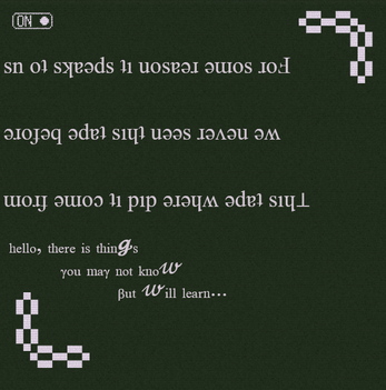 - Top Row (designed by Zechariah Chapman): A camcorder-inspired recording of a "chained existence" that cannot be seen or heard (or both, but is not real). A representation of my experience with schizophrenia.